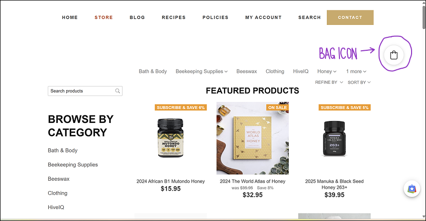 - Cart/bag/basket icon