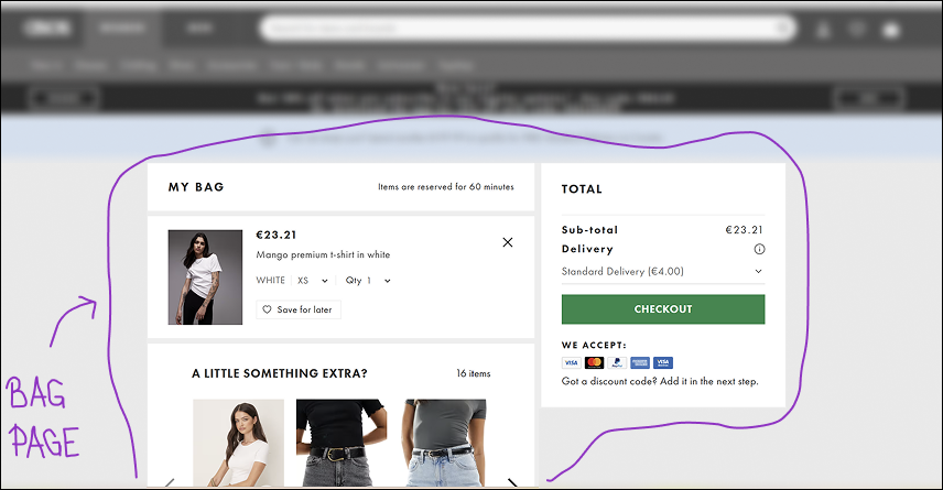 - Cart/bag/basket page